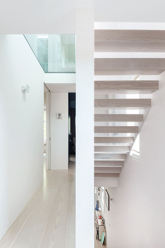 Inspirational use of light is the defining feature of the project and is more than the single internal courtyard; it is consistent throughout the home. All four levels are organised around straight lines and spaces that simultaneously divide and connect, conceal and reveal. For example, sliding pocket doors (fire-rated, as is required in all homes with more than two storeys) can either disappear into a wall or fully enclose rooms, such as in the loft extension.
