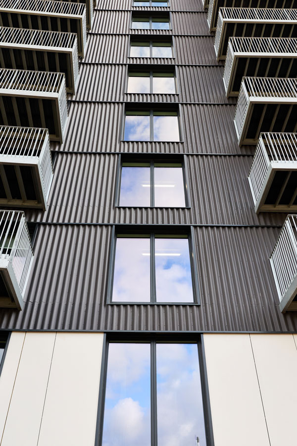 The façade of District Lofts was constructed by Hansen Facades using CROSSFIX, in conjunction with main contractor Artium Construction after its successful deployment on Aire Lofts. Here, the system’s versatility and effectiveness were first recognised for attaching secret-fix Ivory panels that demarcate duplex apartments at the ground and first floor levels.