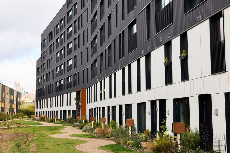 The construction of two apartment buildings within the ground-breaking Climate Innovation District urban regeneration project in Leeds demonstrates how the EJOT CROSSFIX® substructure system can be used to incorporate rainscreen facades into highly sustainable buildings, without the need to vastly increase insulation depth.