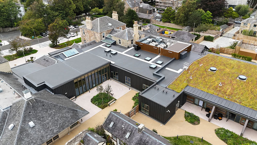 A Scottish charity required extensions to its 201-year-old Category ‘B’ listed premises. Close collaboration during a challenging project between Bauder and architects Austin-Smith: Lord LLP ensured flat-roof upgrades met regulations while respecting the site’s heritage and adding a modern touch to the rear curtilage. Precision in the fully compliant, multi-layer green roof design is backed by 20 years of assured design, warranty, and performance. The project’s success enables the charity to expand its care across Ayrshire and Arran communities.