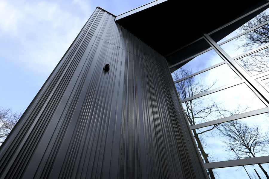 LXarchitects chose random profiling and determined a nice mix. Storax’s craftsmen neatly adopted this design and finished between the frames with flashing. Fabian Greveling (Storax) explains, “Our installers followed the drawing and alternated narrow, wide, and border profiles according to the design. All the profiles, accounting for 78 m², were placed within five days. Smooth installation is one of Linarte’s advantages. You have to think of it as a kind of accordion with 2 mm margin (narrower and wider) per profile. So if there are already frames, you can still slide various profiles in and out to create the desired look. That gives us more freedom in execution. Ease of installation is also a strong argument in new buildings, in addition to the vertical character that makes the façade easy to clean and the possibility of integrating techniques. Here, for example, cables from the embedded security cameras run neatly behind the profiles, for a sleek result.”