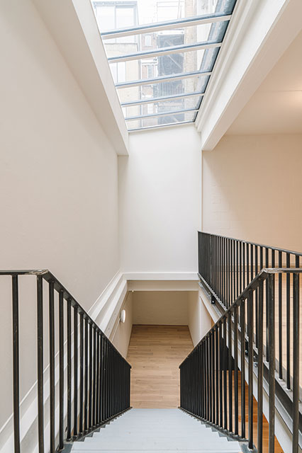 Winthill Engineering designed a sophisticated staircase with a hidden structural support which enhances the triangular space beneath the stairs – the spandrel – and increases circulation space.
