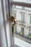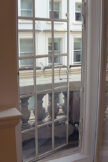 ASWS reused all of the ironmongery that was original, consolidating it to certain floors so the windows have a sense of continuity, and then they used a stock of heritage ironmongery to fulfil the remaining floors with ironmongery much more in keeping with the history and heritage of the building. All brass ironmongery and bracketry were stripped, burnished and lacquered. All other ironmongery was painted to match the windows.