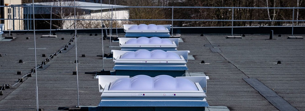 The F100 W dome is designed for straightforward integration into flat roofing systems and offers a clean, modern profile for both retrofit and new-build applications.