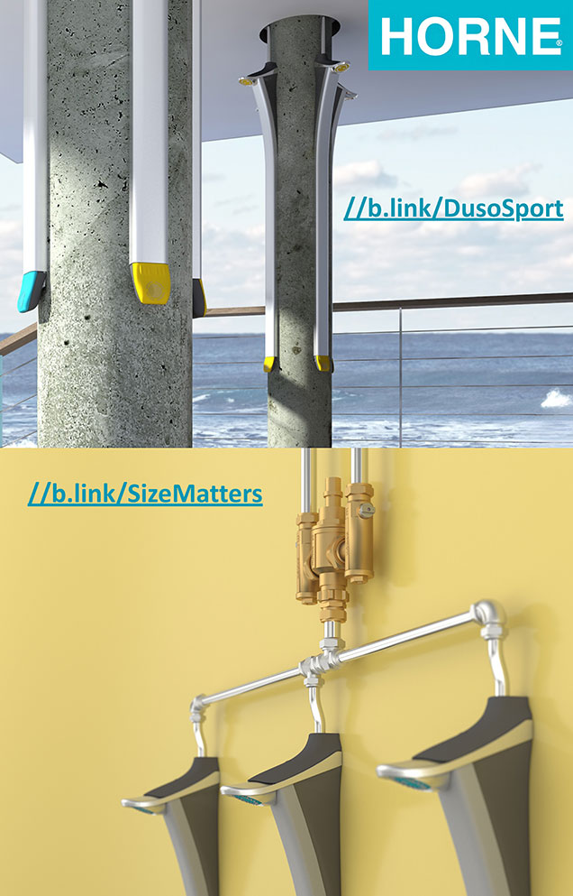 Horne’s Duŝo shower column offers a streamlined, resource-efficient approach to communal shower provision in sports and leisure facilities, education environments and other high-use wet facilities.